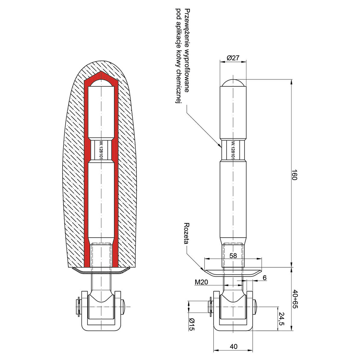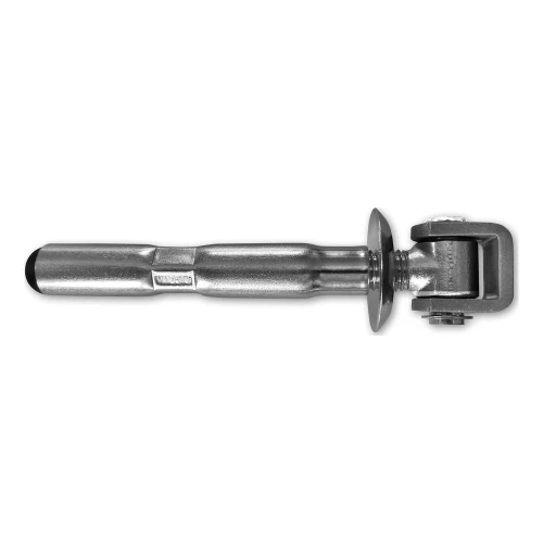 L'ancrage est destiné à être scellé ou collé dans les poteaux de clôture — en béton, pierre ou clinker. Le rétrécissement sur le corps de l'ancrage est profilé de manière à assurer une connexion optimale avec l'ancrage chimique, ce qui garantit une haute capacité portante et une résistance aux charges dynamiques typiques des vantaux de portails et portillons. La rosace couvrant le lieu de montage assure un effet visuel propre et professionnel.