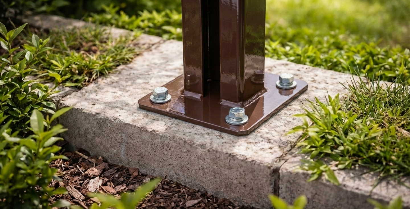 Platine de fixation pour poteau de clôture 60x40 mm – galvanisée et thermolaquée RAL 8017