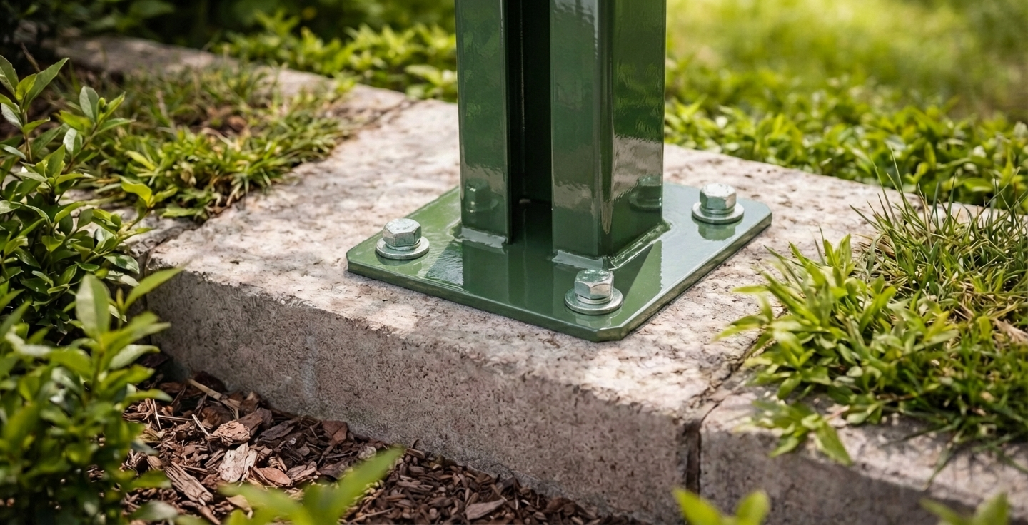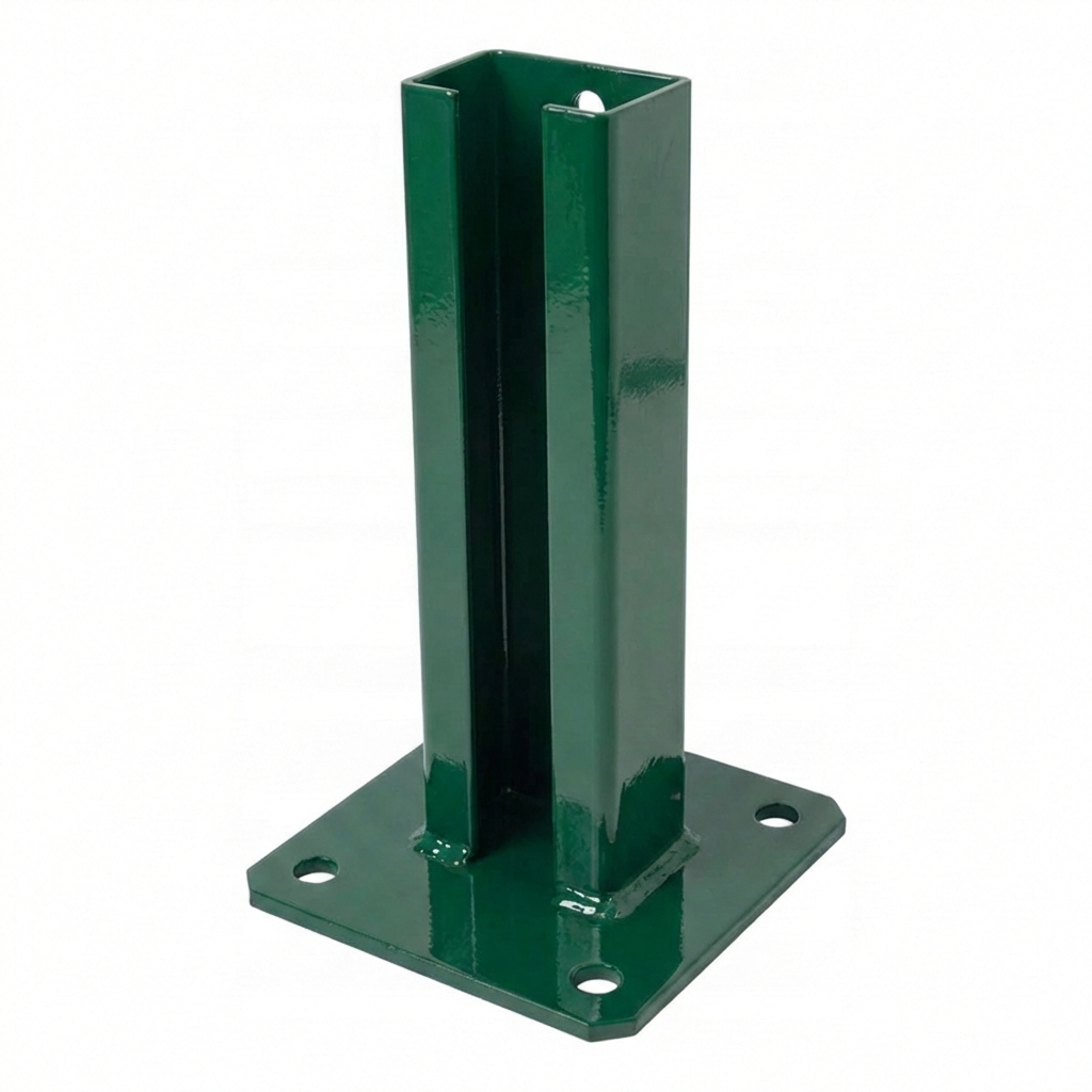 La platine est compatible avec les poteaux de clôture standards de section 60×40 mm, utilisés dans la plupart des systèmes de clôtures à panneaux. Solution idéale pour les entreprises d'installation réalisant le montage de clôtures sur fondations et soubassements en béton à l'extérieur — même dans des conditions atmosphériques difficiles.