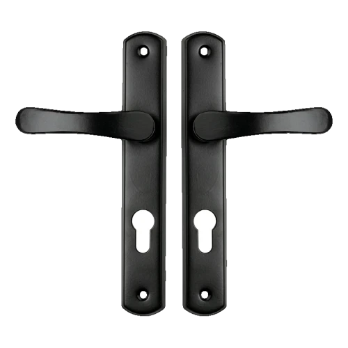 Béquille de porte Yale avec plaque biscuit noire – entraxe 72 mm