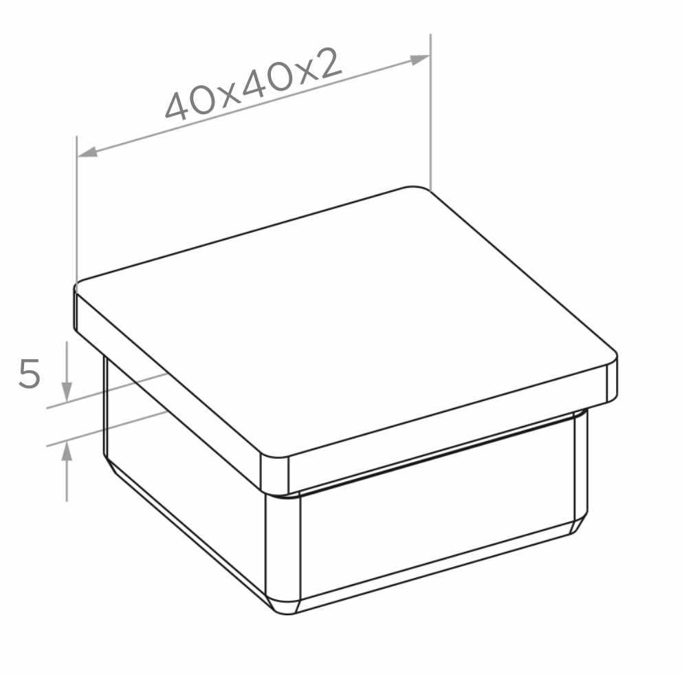 Bouchon à tête plate destiné au profil carré 40×40×2 mm — finition esthétique et durable des main-courantes de garde-corps en acier inoxydable. Le bouchon monté par enfoncement dans le profil assure un assemblage rapide et sûr sans nécessité d'utiliser des connecteurs supplémentaires. Fabriqué en acier inoxydable AISI 304 avec finition satinée, il s'harmonise parfaitement visuellement avec les systèmes de garde-corps inox et garantit une résistance durable à la corrosion.