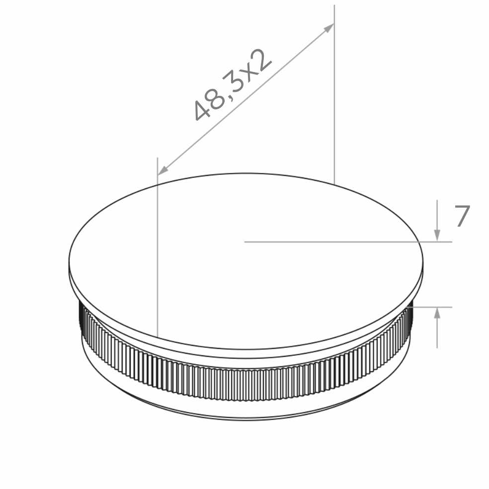 Bouchon bombé à enfoncer pour tubes de balustrade de diamètre 48,3 mm — fermeture esthétique et durable de l'extrémité du poteau ou de la main courante. Fabriqué en acier inoxydable AISI 304 avec finition satinée, il assure un aspect élégant et uniforme à la balustrade ainsi qu'une protection efficace de l'intérieur du tube contre l'humidité et la corrosion.