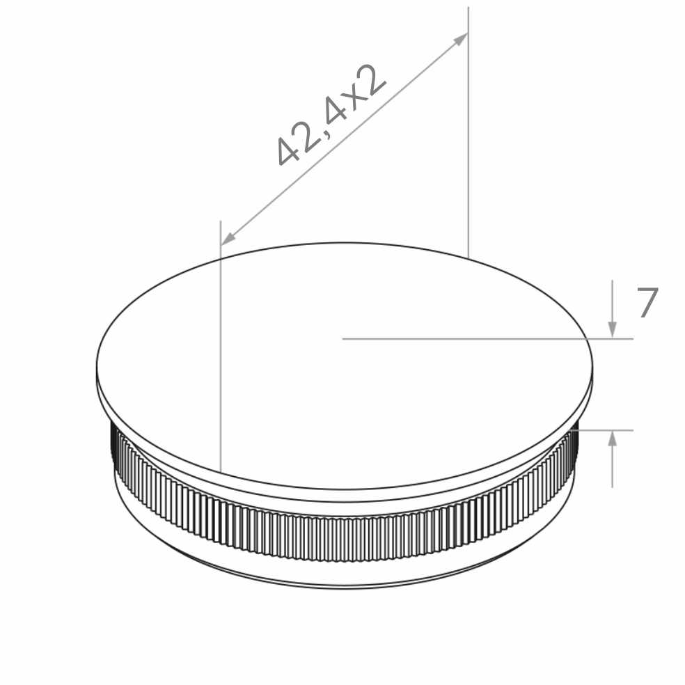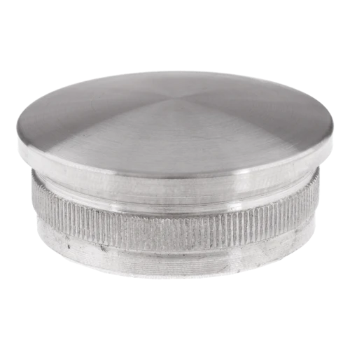 Bouchon convexe à enfoncer destiné à la finition esthétique des tubes de diamètre 42,4×2 mm, utilisés dans les systèmes de balustrades et de mains courantes. Le montage consiste simplement à enfoncer le bouchon à l'intérieur du tube — la surface moletée de la tige assure un ancrage sûr et durable sans nécessité d'utiliser des connecteurs supplémentaires ou de la colle.