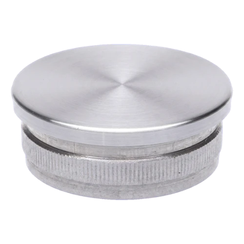 Bouchon convexe à enfoncer pour tubes ronds de diamètre 48,3 × 2 mm — élément de finition esthétique destiné à fermer les extrémités de main-courantes et poteaux de balustrades. Grâce à la partie d'ancrage moletée, le montage s'effectue par enfoncement — sans outils supplémentaires, colles ni soudage. Le bouchon assure une fermeture soignée et sécurisée du profil, éliminant les arêtes vives et protégeant l'intérieur du tube contre les salissures et l'humidité.