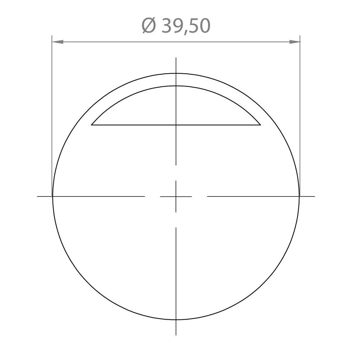 Les bouchons sont destinés au collage dans l'extrémité ouverte de la main courante. Ce mode de montage garantit une liaison stable et durable — l'élément ne se desserre pas avec le temps, ce qui élimine la nécessité de maintenance. Le diamètre extérieur du bouchon est de Ø 39,50 mm, ce qui assure un ajustement précis au profil de diamètre nominal 40 mm.