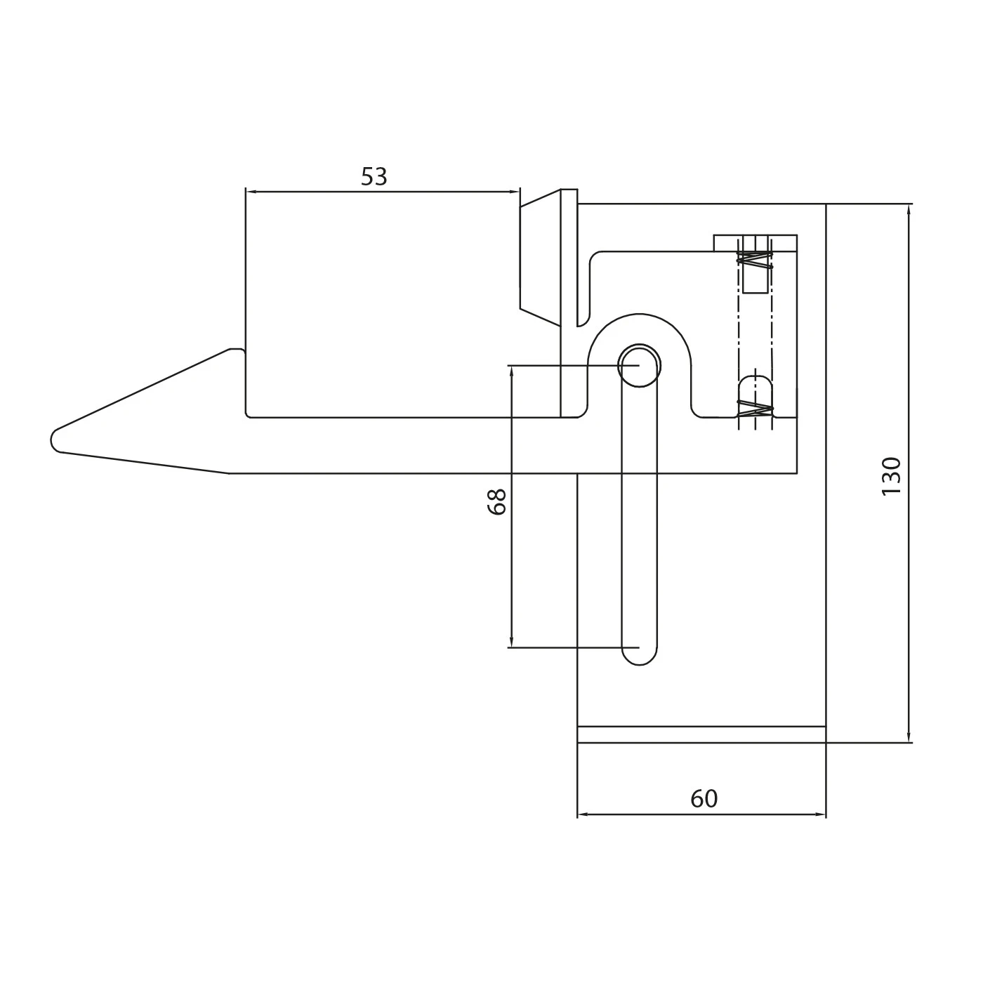 - Longueur de l'attrapeur (élément de butée) : 50 mm (dimension constructive 53 mm)