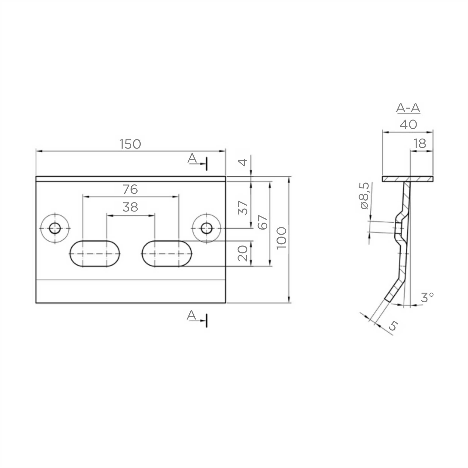 - Entraxe des trous oblongs (entre axes) : 38 mm