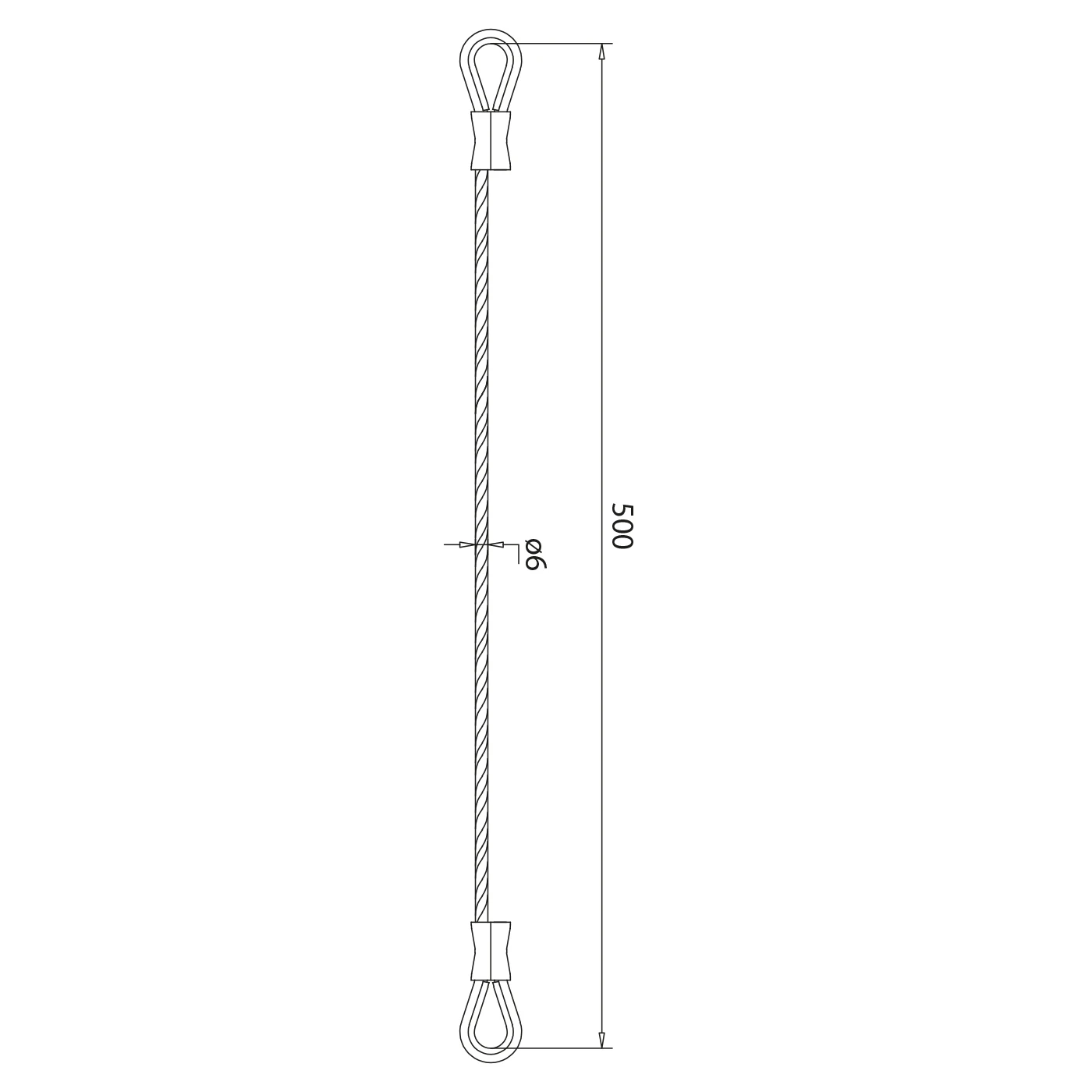 - Câble en acier inoxydable avec cosses et manchons de sertissage aux deux extrémités — 1 pce