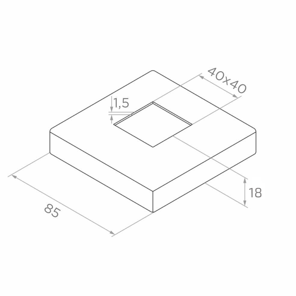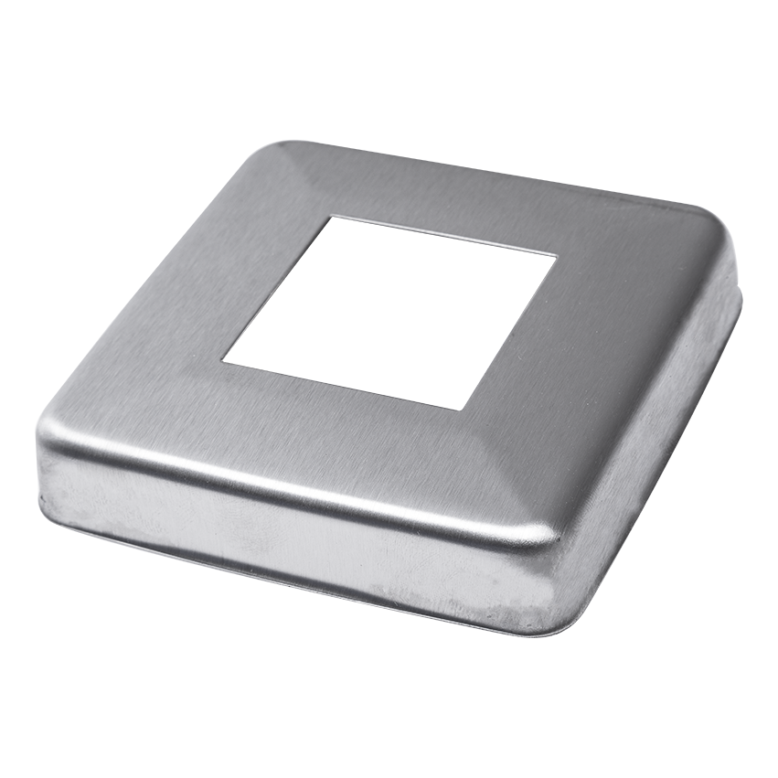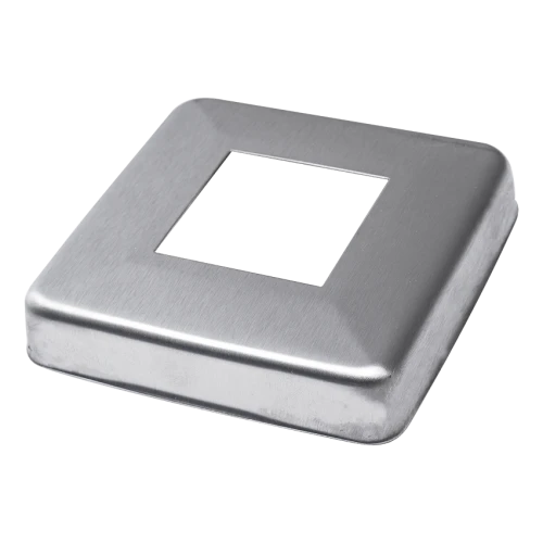 Cache-vis carré 85×85 mm en acier inoxydable AISI 304 avec finition satinée — élément esthétique de masquage destiné à couvrir les trous de montage dans les balustrades inoxydables avec profil 40×40 mm. Grâce à un emboutissage précis et à une surface satinée, la rosace s'harmonise parfaitement avec la construction de la balustrade, lui donnant une finition professionnelle et soignée.