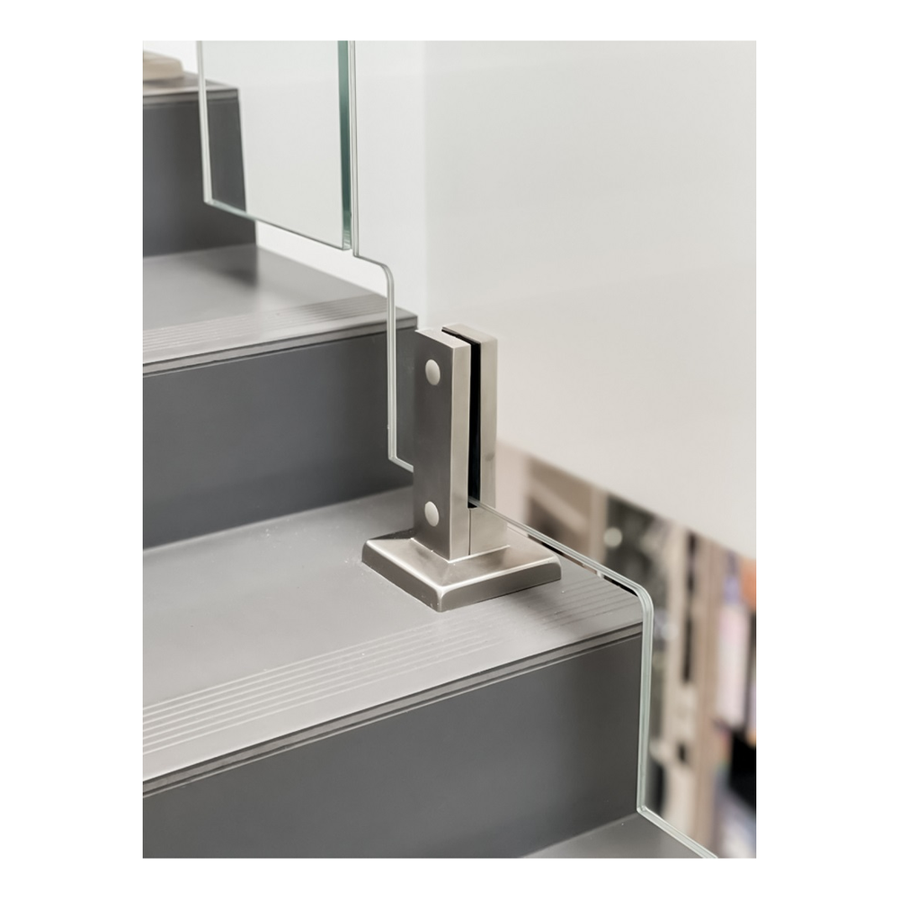 Idéal pour les balustrades en verre, d'escalier et de terrasse — partout où compte la précision des détails et l'aspect professionnel de la construction. La finition satinée s'harmonise parfaitement avec les autres éléments en acier inoxydable utilisés dans les systèmes de balustrades.