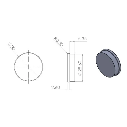 Le capuchon de finition sert à recouvrir les trous de montage restants après l'installation des profilés de garde-corps. La face inférieure de l'élément est équipée de rainures concentriques qui assurent un positionnement sûr dans le trou du profilé. L'élément s'emboîte directement dans le trou – il ne nécessite ni collage ni fixation mécanique, ce qui accélère considérablement les travaux de finition sur le chantier.
