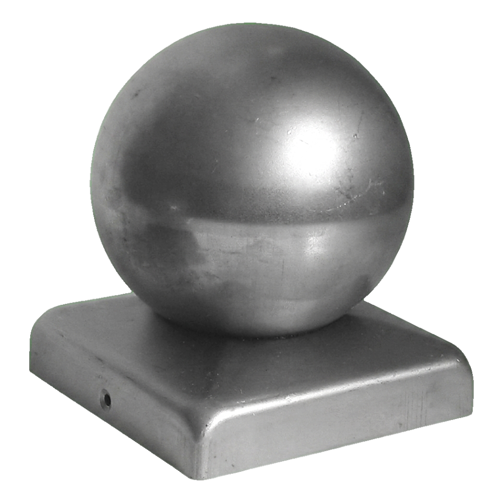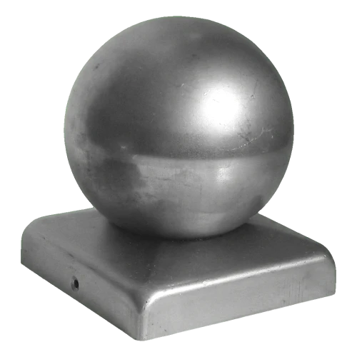 Chapeau de clôture en acier 100×100 mm avec boule décorative Ø 80 – galvanisé