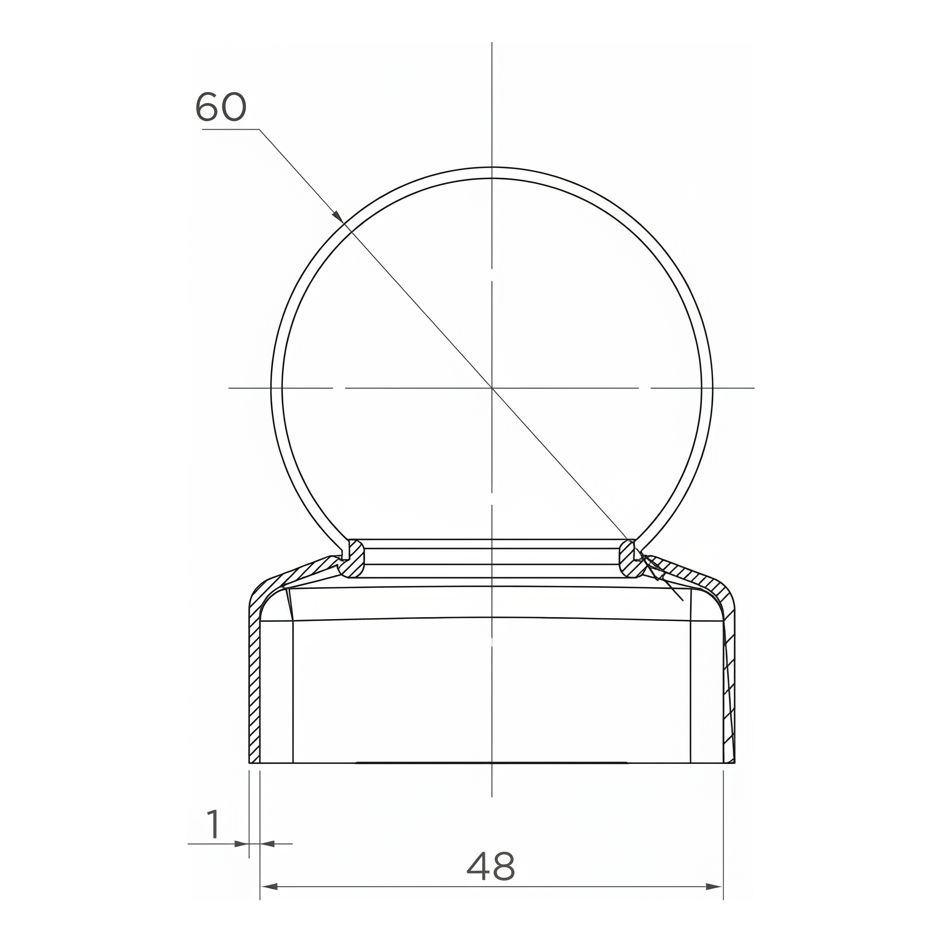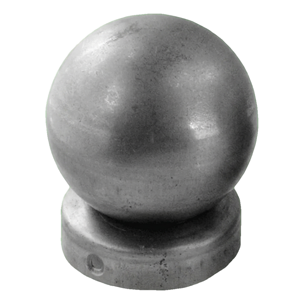 Chapeau de clôture en acier avec boule décorative destiné au montage sur poteaux ronds de diamètre Ø 48 mm (1,5"). L'ornement sphérique de diamètre Ø 60 mm confère à la clôture un aspect élégant et fini, tout en protégeant efficacement le poteau contre la corrosion causée par la pluie et l'humidité.