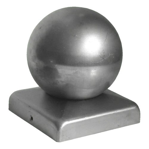 Chapeau de poteau en acier avec boule 120×120 mm / Ø 100 mm – brut