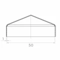 Chapeau de poteau en acier en forme d'enveloppe avec rebord haut destiné à être posé sur les poteaux de clôture de section 50×50 mm. Il protège efficacement le bord supérieur du poteau contre la corrosion, la pluie et autres facteurs atmosphériques — prolongeant la durée de vie de l'ensemble de la clôture. La forme caractéristique d'enveloppe donne à la clôture une finition esthétique et soignée.