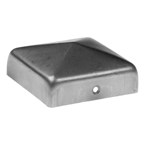 Le chapeau est fabriqué en tôle d'acier d'épaisseur 1 mm, garantissant une haute résistance mécanique avec un poids réduit. Le rebord élevé de 18 mm de hauteur entoure stablement le poteau, et des trous de montage spéciaux permettent un vissage ou rivetage rapide — sans nécessité d'utiliser des fixations supplémentaires. Le produit est livré à l'état brut, prêt à être peint ou laqué dans n'importe quelle couleur, permettant d'adapter la finition au style de la clôture.