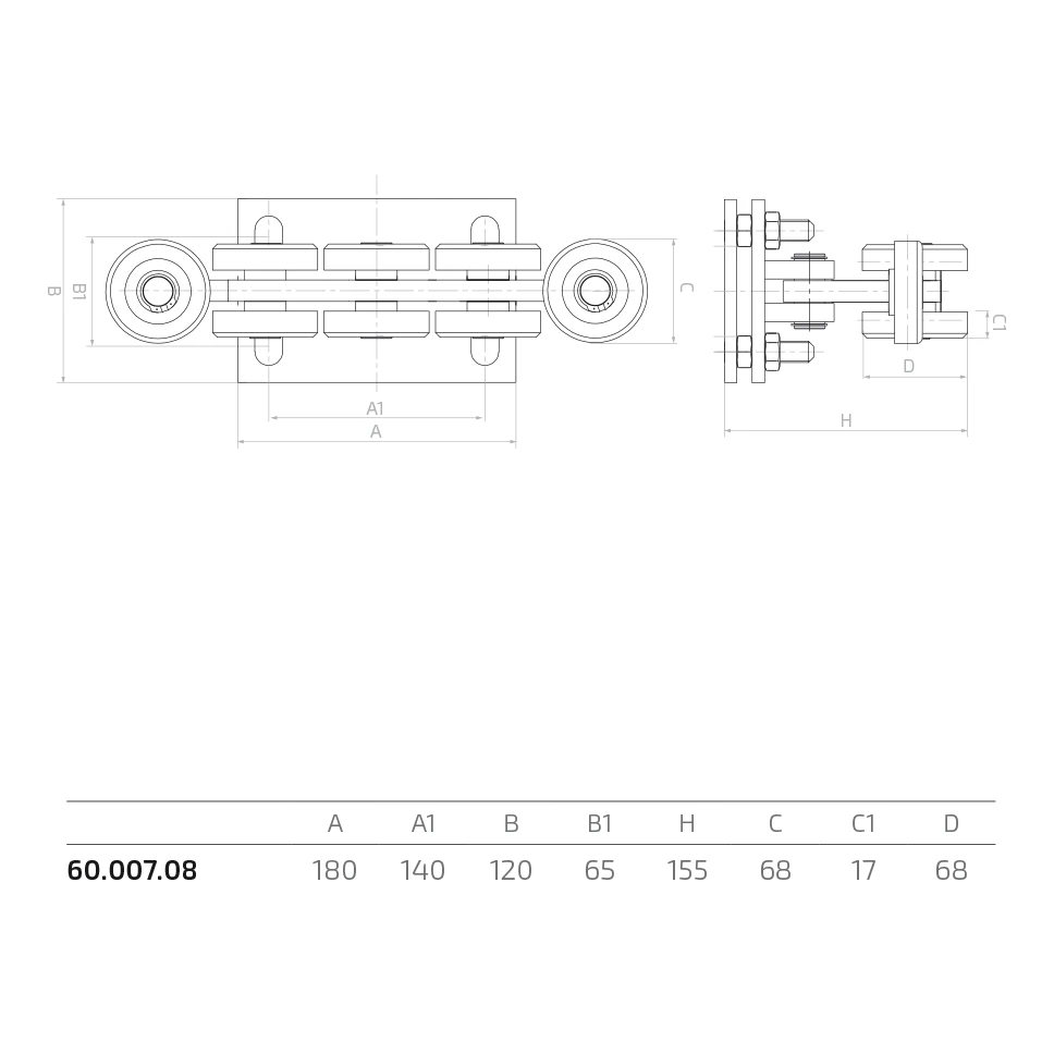 Le chariot est conçu pour fonctionner avec un rail de roulement 80×80×5 mm — le profilé standard utilisé dans les systèmes de portails coulissants à grande capacité de charge. La conception compacte et la fabrication précise des éléments roulants permettent un montage rapide et une exploitation sans entretien.
