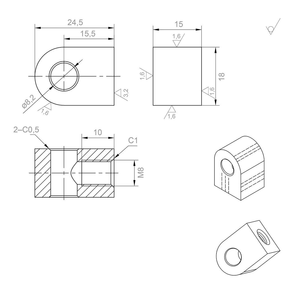 - Chanfreins : 2×C0,5 et C1