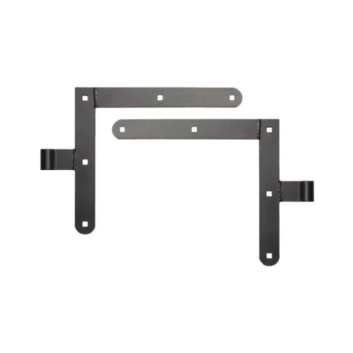 Lot de quatre charnières d'angle destinées au montage de grandes portes, portillons et portails — particulièrement dans les bâtiments agricoles et ouvrages de clôture. Le kit comprend 4 charnières pour deux vantaux, ce qui permet de réaliser le montage en une seule commande, sans nécessité de compléter les éléments séparément.