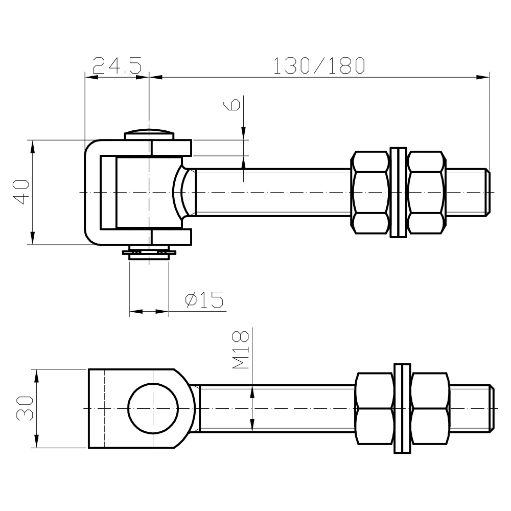La charnière réglable vissée M18 L180 mm est un élément de suspension robuste en acier destiné au montage de portillons et de portails légers à battant. Grâce au filetage M18 avec écrous de réglage, elle permet un réglage précis de la position du battant aussi bien lors du montage qu'en cours d'utilisation — sans nécessité de démonter toute la suspension.