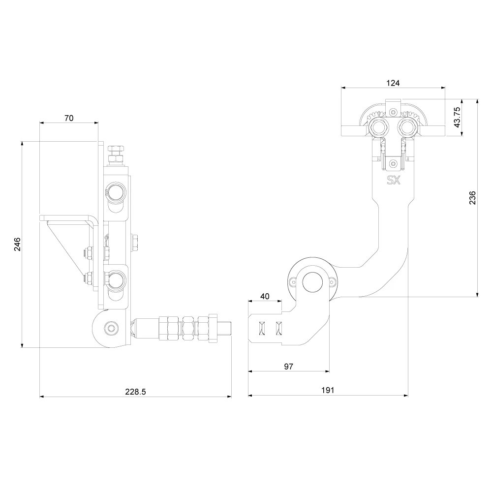 - Longueur avec axe : 228,5 mm