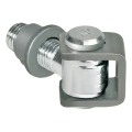 La charnière est destinée au soudage directement dans la construction en acier du poteau de portail ainsi que du vantail du portail. L'élément en forme de U se soude au poteau ou au vantail, et la tige filetée M24 avec écrou de réglage permet une correction fluide de la position du portail en vertical. La plage de réglage est de 55–75 mm, ce qui donne 20 mm de jeu pour un positionnement précis du vantail sans nécessité de ressouder.