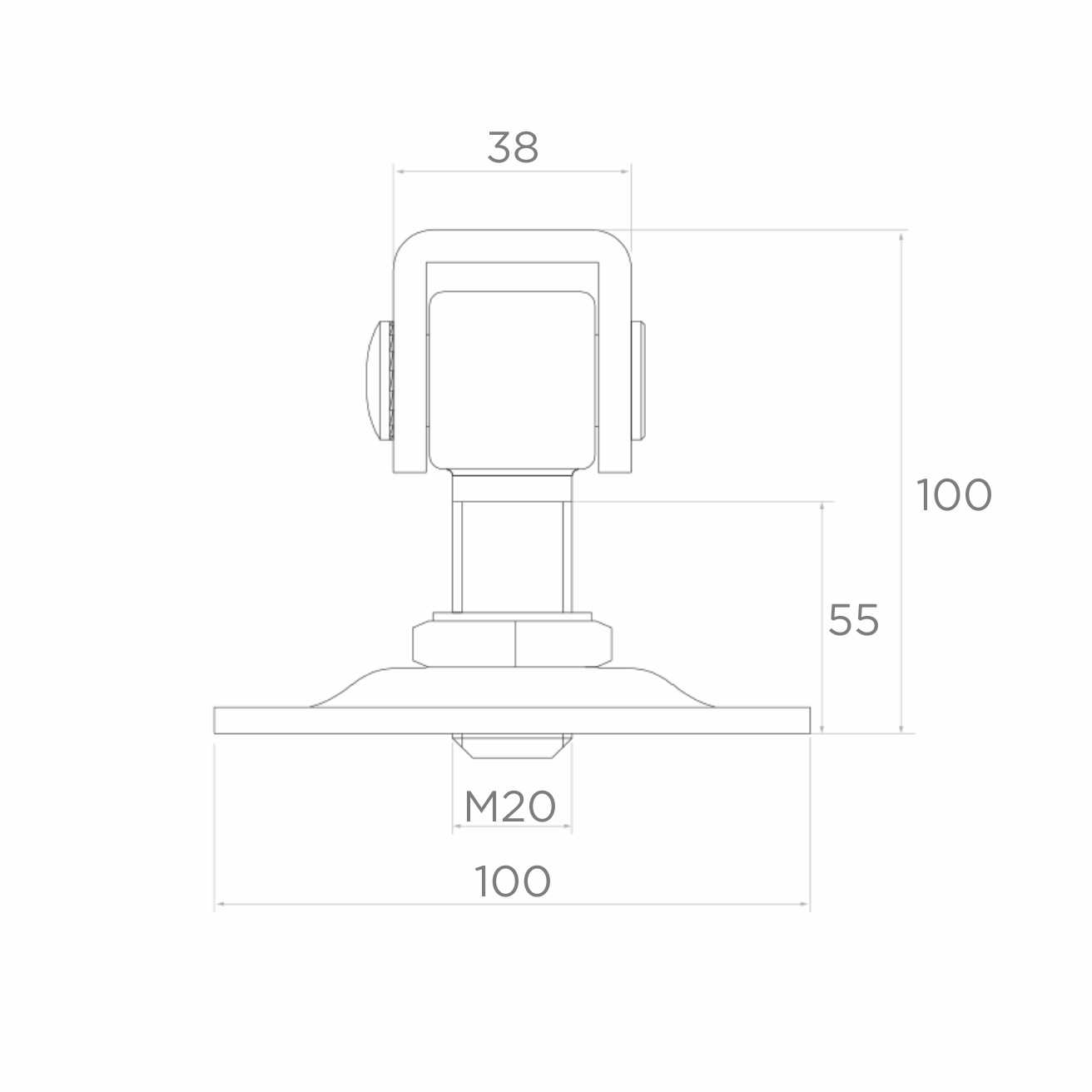 Comunello – charnière réglable pour portails battants M20, platine 100×100 mm