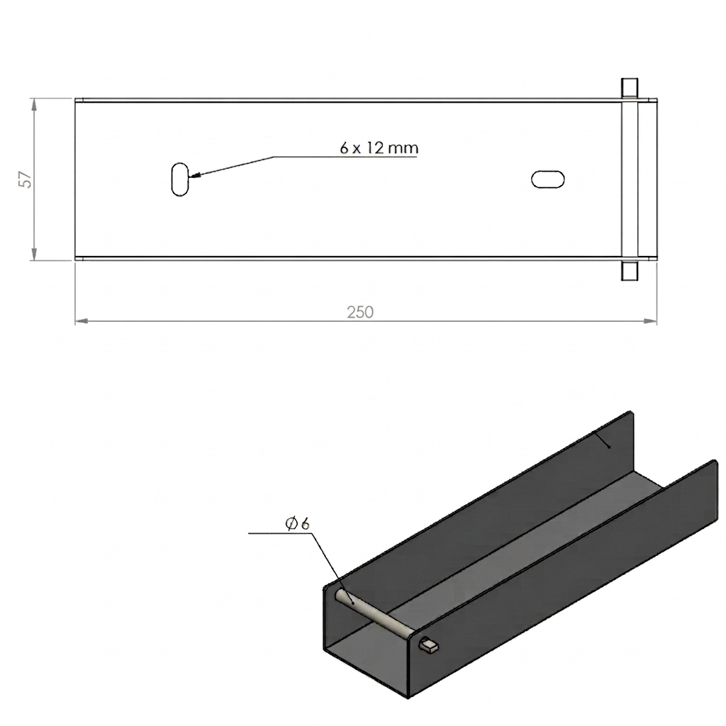 - Trous de montage : 2 pcs — boutonnières 6 × 12 mm