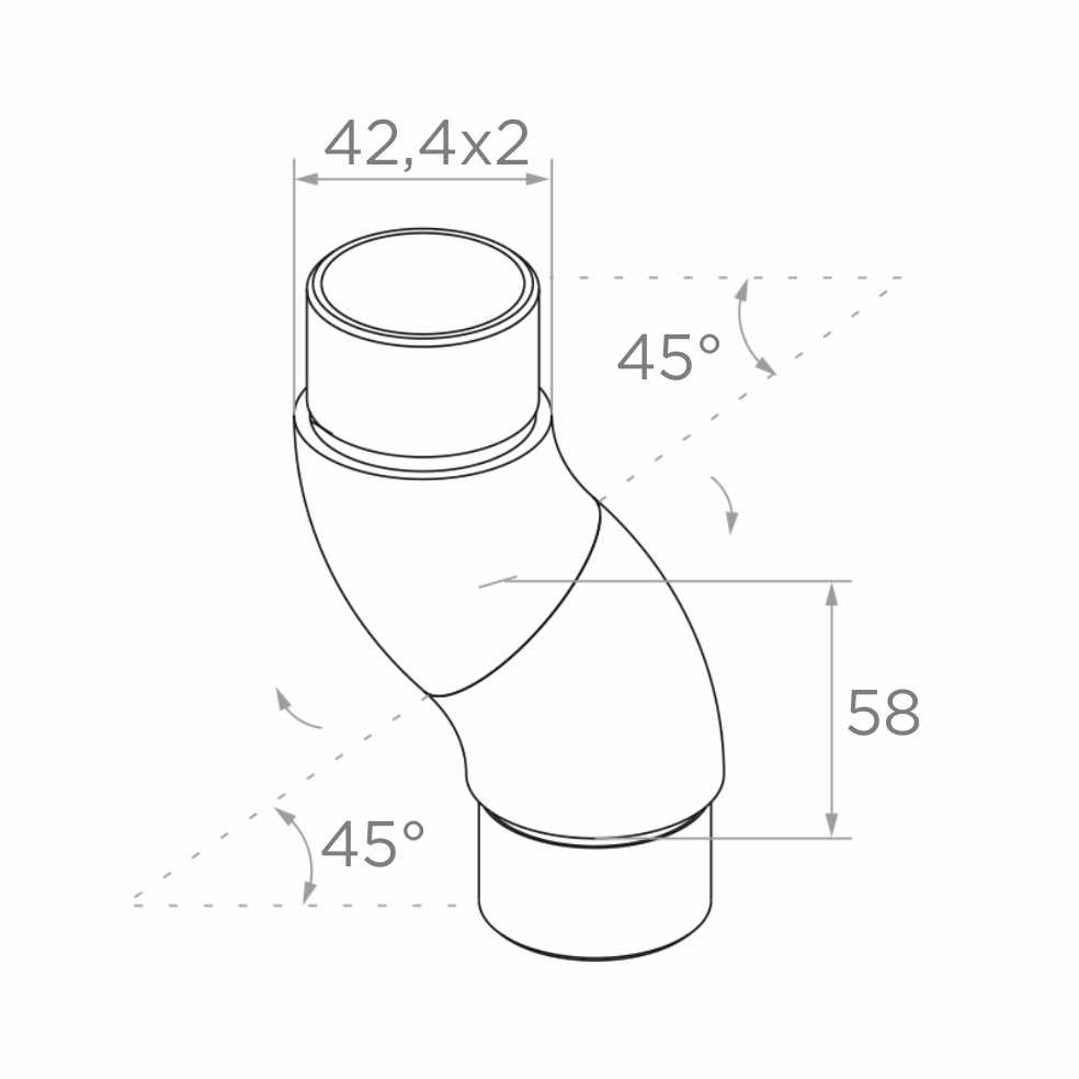 Le coude articulé à coller est un raccord articulé pour rampe d'escalier destiné aux tubes de diamètre 42,4 mm et d'épaisseur de paroi 2 mm. Il permet un réglage fluide de l'angle de connexion des éléments structurels de la rampe, ce qui en fait une solution idéale dans les endroits où les profils se rencontrent sous différents angles — principalement dans les angles et aux changements de direction de la main courante.