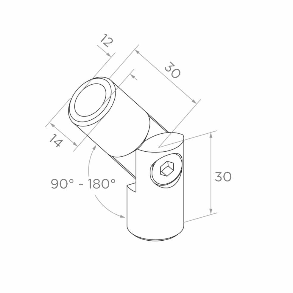 Coude articulé de balustrade 90°–180° pour barre ø 12 mm – acier inoxydable AISI 304 satiné