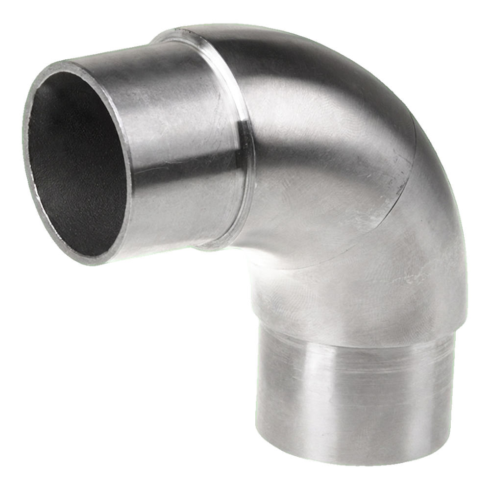 Coude doux à coller 90° pour balustrade inox – système 42,4 mm, satiné