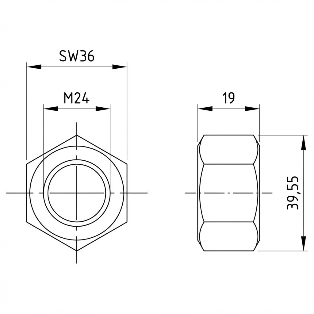 La conformité a la norme DIN 934 signifie une forme hexagonale standardisée qui permet un serrage facile a l'aide d'une clé standard. L'écrou est réutilisable et compatible avec toutes les vis métriques M24 a filetage a droite.