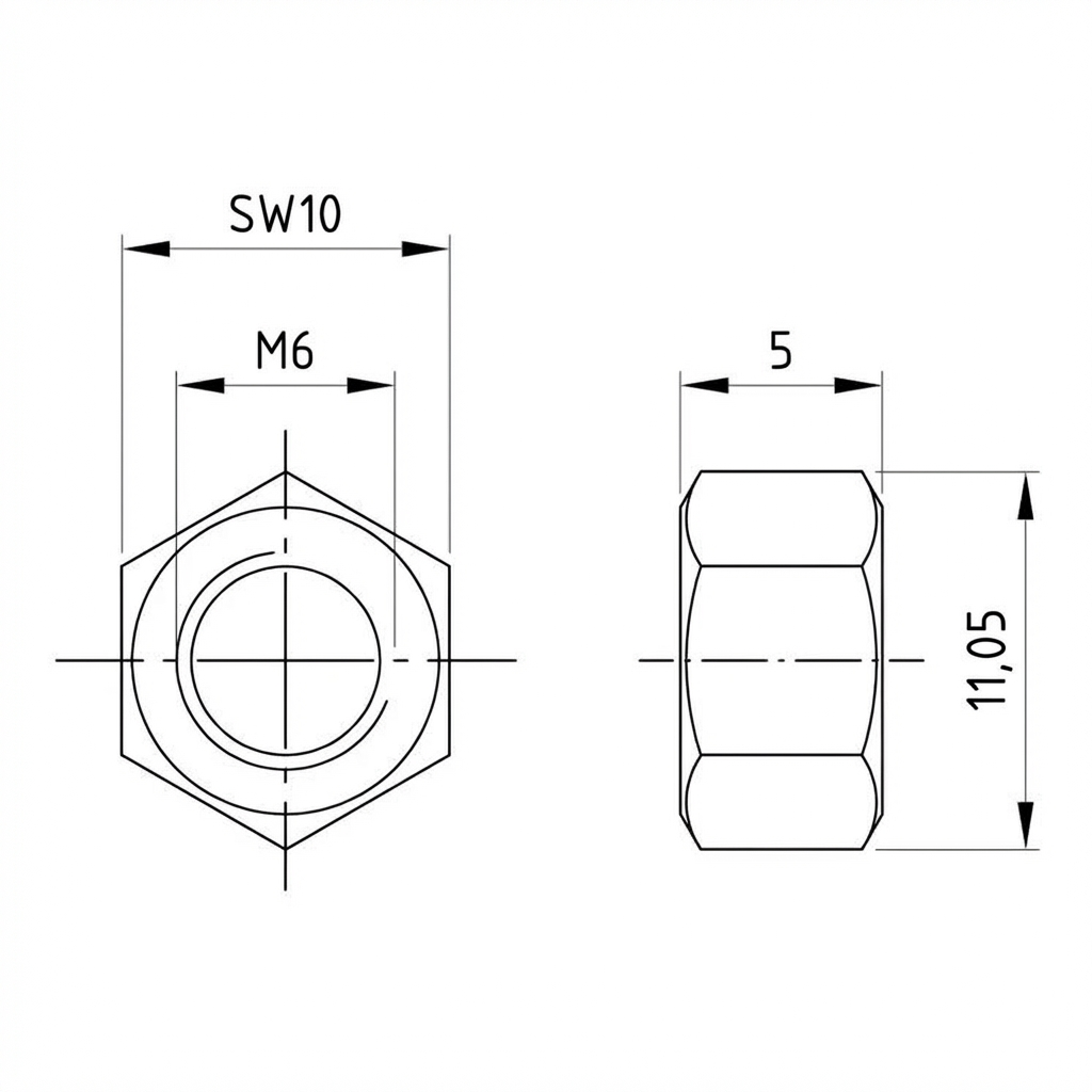 La conformité à la norme DIN 934 signifie une forme hexagonale standardisée qui permet un serrage facile avec n'importe quelle clé standard. L'écrou est réutilisable et s'adapte à toutes les vis métriques M6 à filetage à droite.