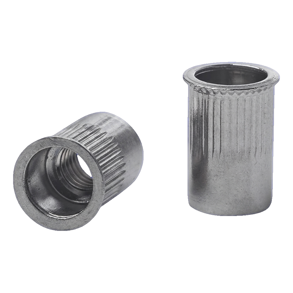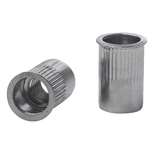 La collerette conique réduite avec tige moletée assure un positionnement sûr dans le trou de montage — le moletage empêche l'écrou à river de tourner pendant le serrage et l'utilisation, et la collerette conique garantit un contact étroit et uniforme avec la surface de l'élément fixé. Cette solution est particulièrement importante lors du montage de garde-corps et de main-courantes, où la stabilité de la connexion affecte directement la sécurité des utilisateurs.