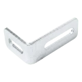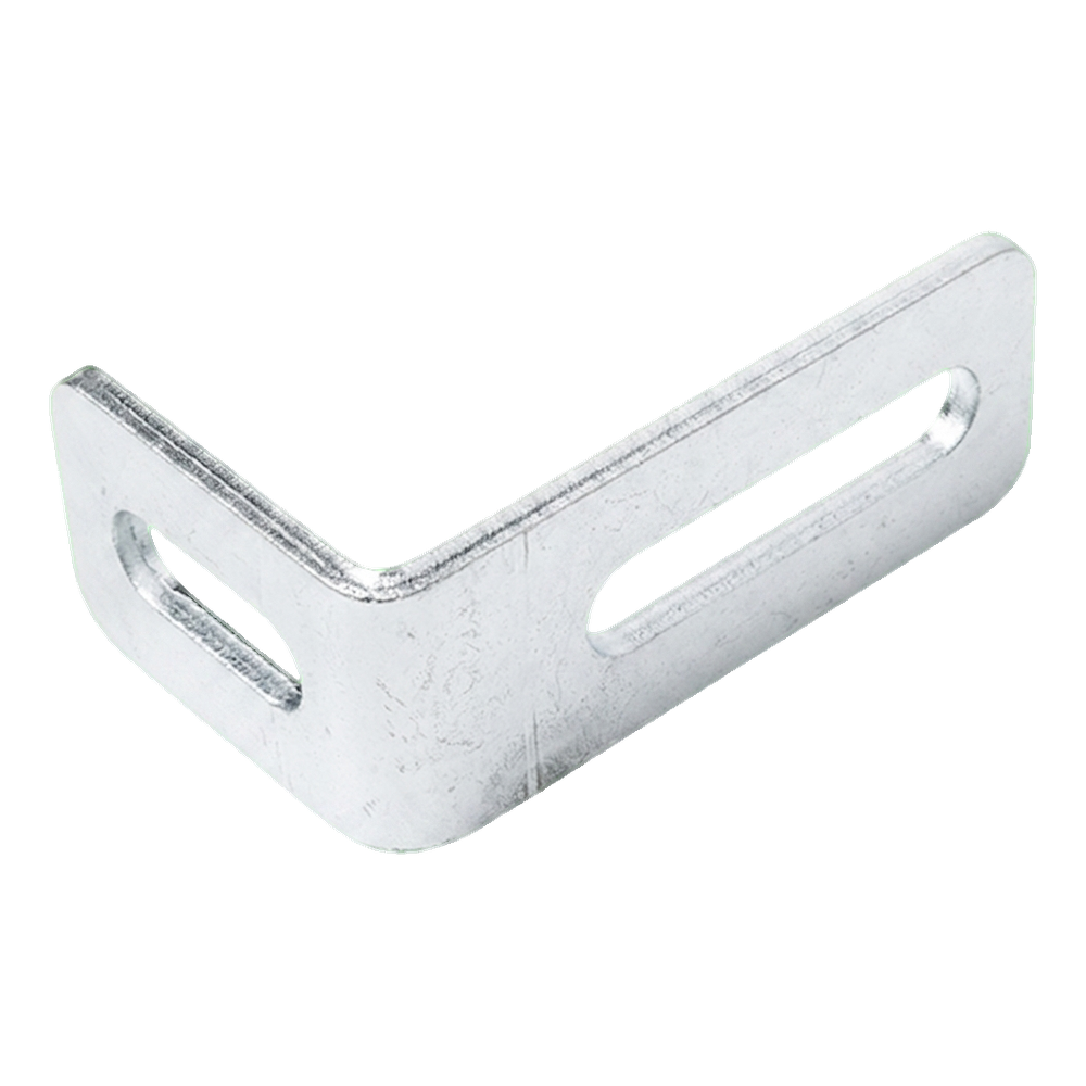 L'équerre sert à fixer le galet de guidage sur le poteau du portail coulissant autoportant. Les trous de réglage ovales sur les deux bras permettent un ajustement fluide de la position du galet par rapport au rail de roulement du portail — sans nécessiter un nouveau perçage des trous. C'est un avantage important lors des montages où un réglage précis du guidage du vantail du portail est requis.