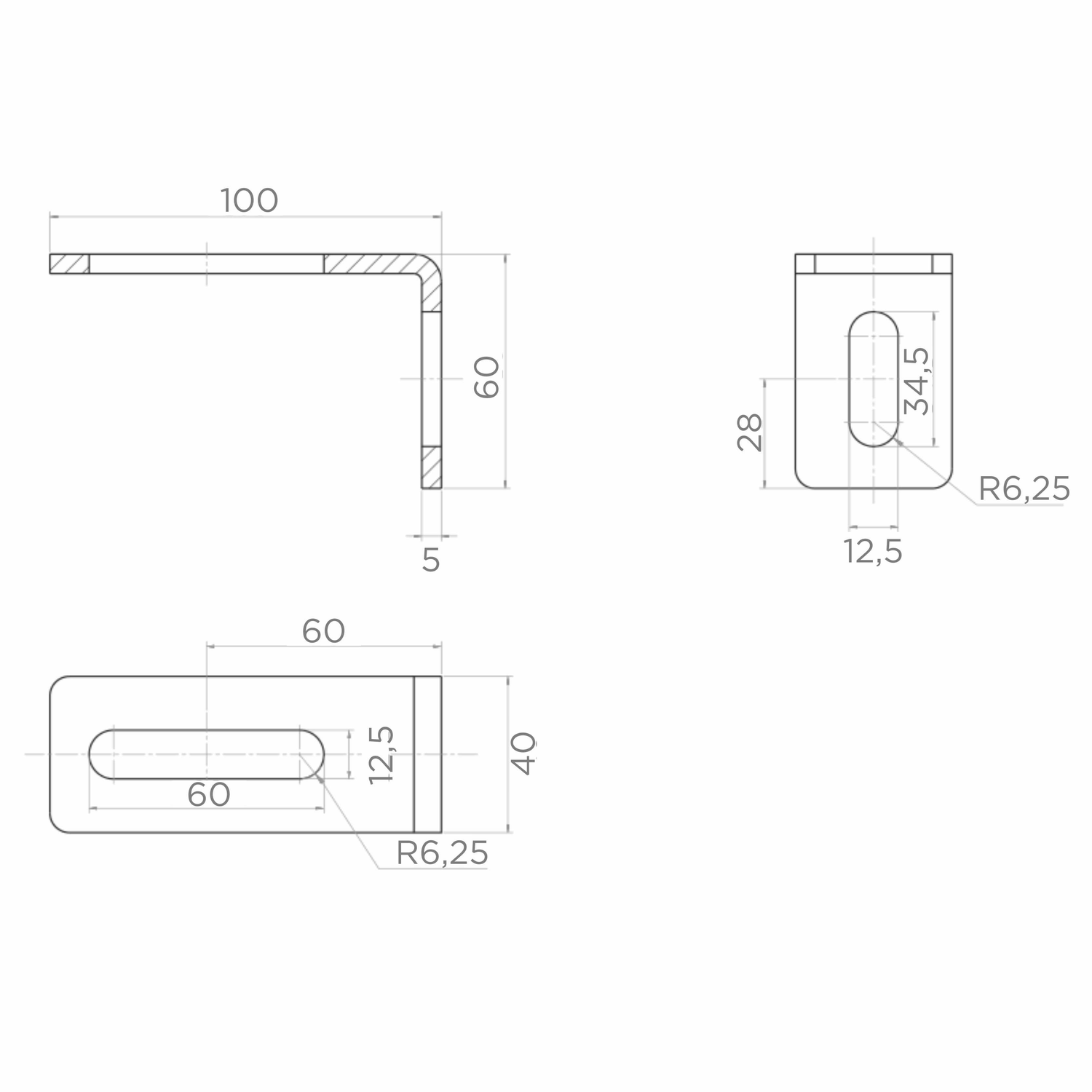 - Trou ovale – bras horizontal : 60 × 12,5 mm (rayon d'arc R 6,25 mm)