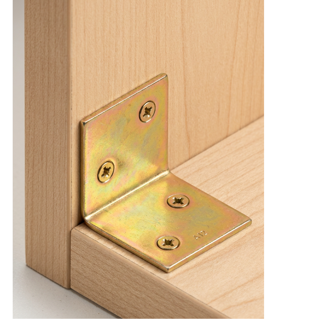 L'équerre de montage large KS1 est un connecteur d'angle universel destiné aux travaux de menuiserie, d'ébénisterie et aux petites constructions en bois. Fabriquée en tôle d'acier DC01 d'une épaisseur de 1,5 mm avec une protection anticorrosion sous forme de galvanisation électrolytique dorée, elle assure une liaison solide et esthétique des éléments à angle droit.
