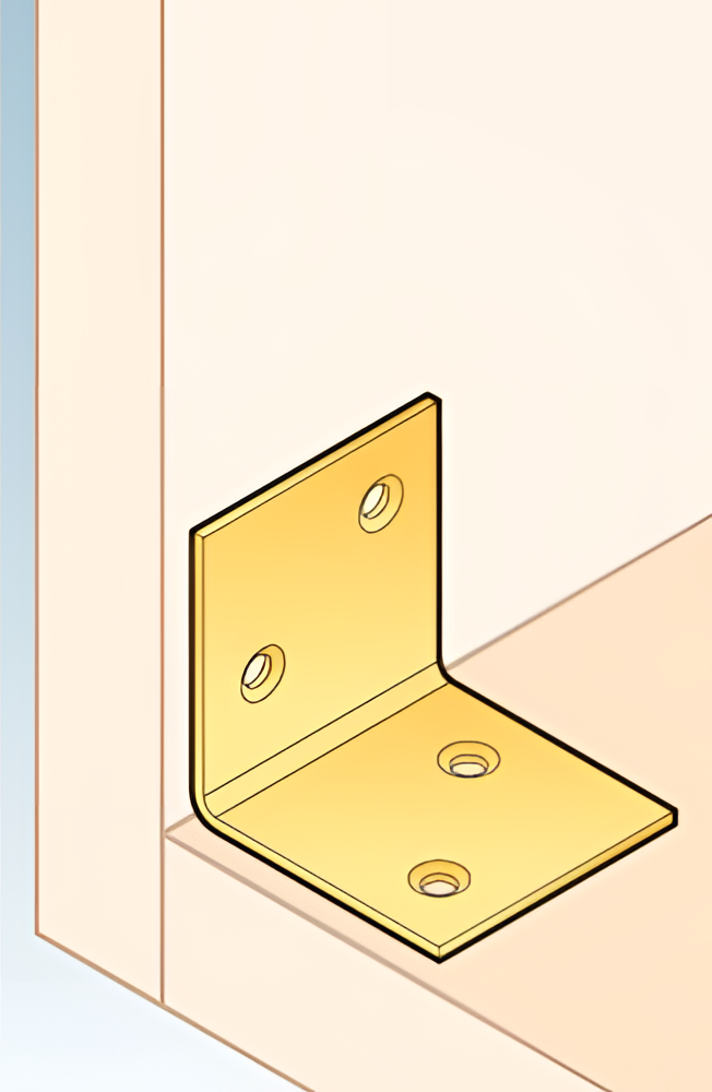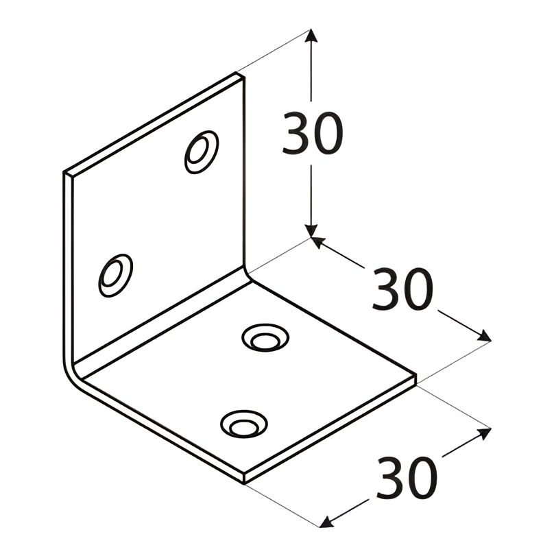 Les quatre trous de montage (ø4,5 mm) – deux par aile – assurent un transfert de charges stable et uniforme dans l'assemblage d'angle.
