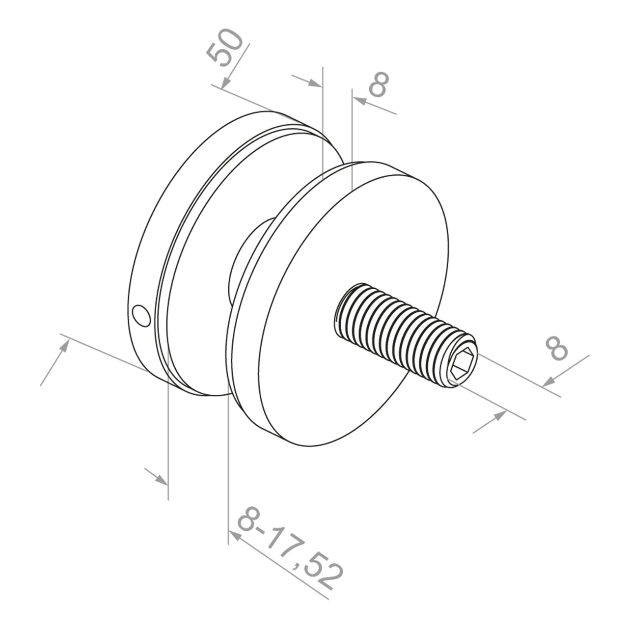 Fixation ponctuelle pour verre 8-17,52 mm fi 50/8/M8x45 AISI 304 système plat satiné