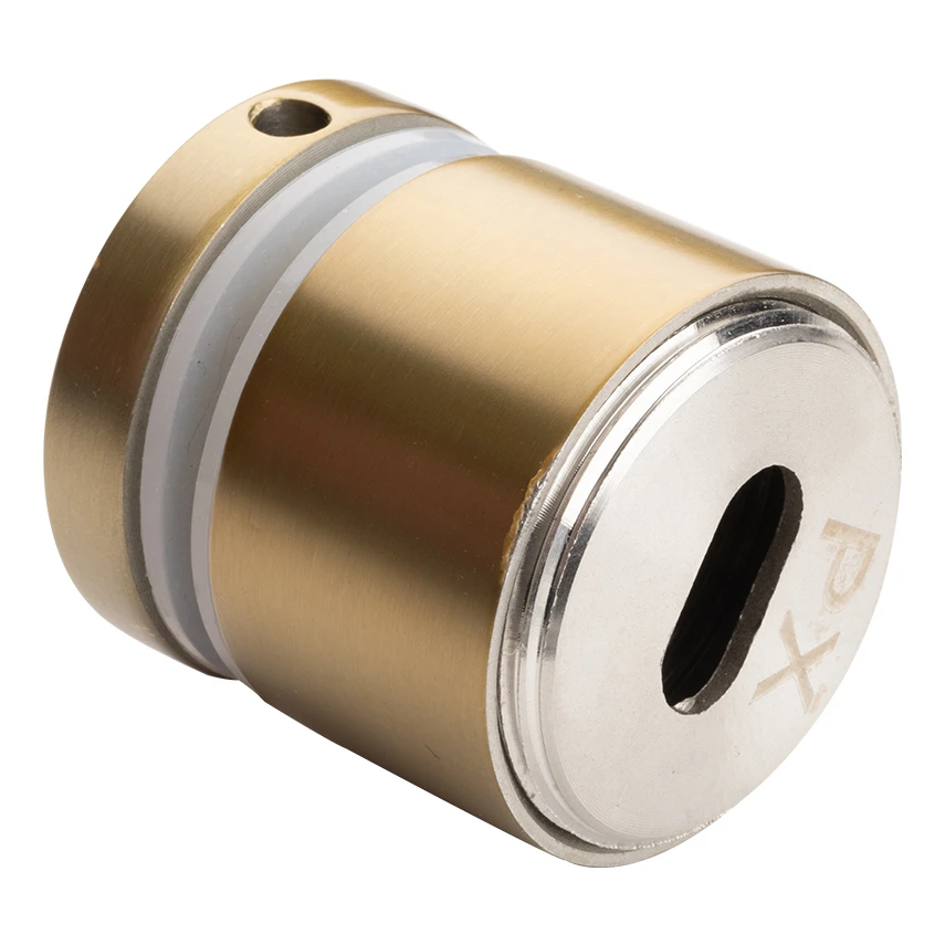 La surface de la fixation est recouverte d'un revêtement PVD (Physical Vapor Deposition) appliqué sous haute pression de vide. Cette technologie crée sur la surface de l'acier une couche dure d'une épaisseur de 3 à 5 microns, qui réagit avec le substrat pour garantir une durabilité et une résistance aux éclats, aux chocs et aux intempéries. Une solution particulièrement importante pour les installateurs réalisant des projets en extérieur — garde-corps, auvents ou cloisons en verre.