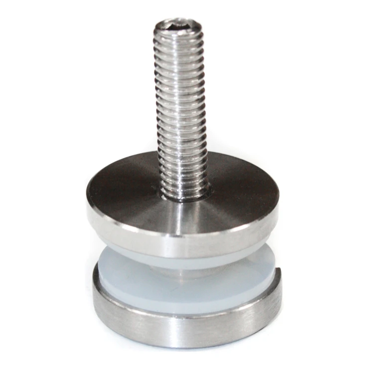 La fixation ponctuelle ronde (rotule) permet une fixation rapide et sûre du panneau de verre dans le garde-corps inoxydable. La construction avec manchon d'écartement d'épaisseur 4 mm permet de maintenir un espacement uniforme du verre par rapport à la surface de montage. L'ensemble comprend un kit complet de joints d'étanchéité isolants, qui protègent le verre du contact direct avec l'acier — éliminant le risque de fissures et assurant un fonctionnement silencieux et stable de la fixation.