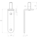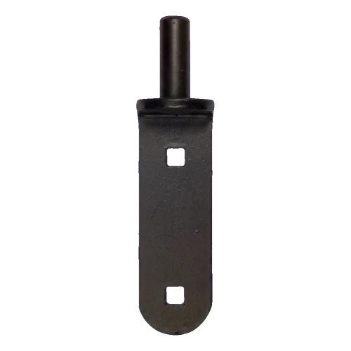 Gond (axe) de charnière à sangle destiné aux portails battants et portillons. Élément monté par vissage sur le poteau ou le cadre du portail grâce à deux trous carrés de 10,4 mm. Construction d'angle avec plaque de montage massive et axe de diamètre 18 mm assure une suspension durable et stable du vantail du portail.