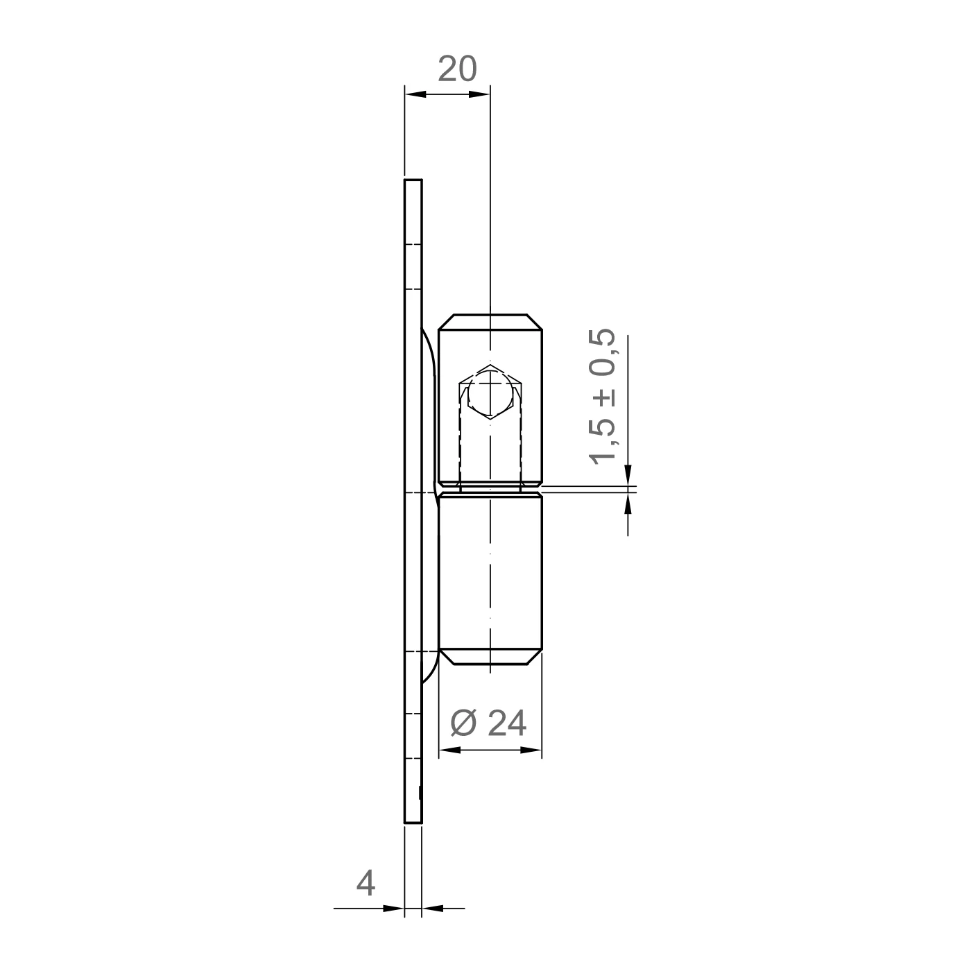 - Distance de l'axe de rotation au plan de montage : 20 mm