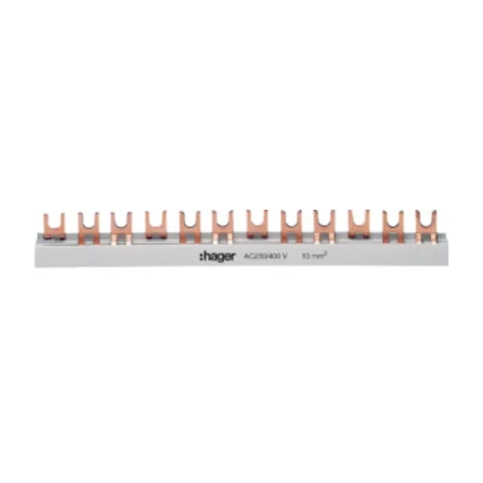Bus de jonction 57mod 10mm2, KDN363B borne à fourche Hager Les rails de commutation sont utilisés pour ponter l'alimentation ou connecter des produits entre eux. Le choix du bon type de bus dépend du type d'appareil, en raison des différences de paramètres physiques.