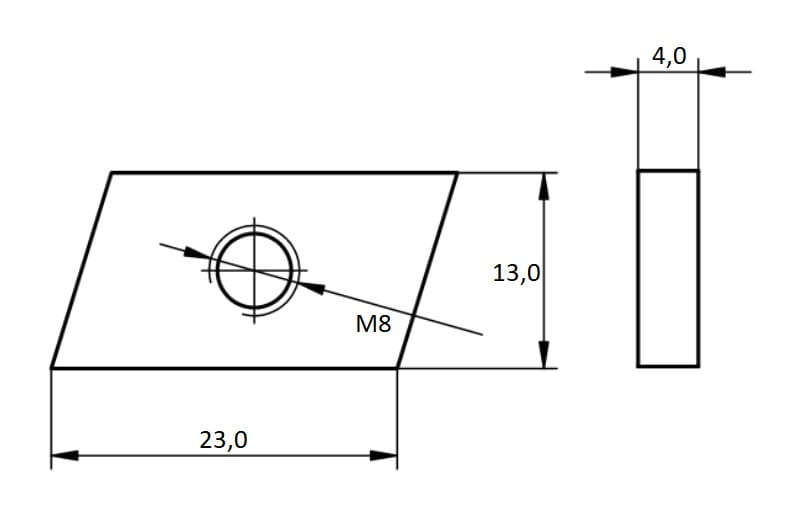 Insertes filetées M8, Type 28/15, Article 9297, acier inoxydable A2 - 1.4301 grade 30 avec arêtes vives, pour les systèmes photovoltaïques.