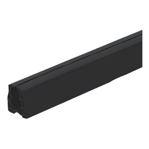Le produit est vendu en sections de longueur 2500 mm (2,5 m), ce qui facilite la découpe précise sur mesure et minimise les déchets de matériau sur le chantier. La couleur noire du joint assure un aspect discret et esthétique une fois monté dans la main courante.
