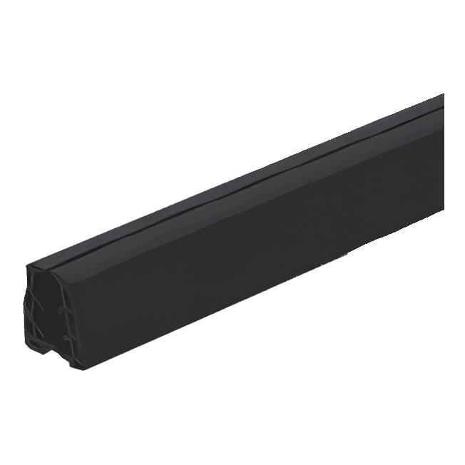 Le joint se colle à l'intérieur de la main courante sur toute sa longueur. Livré en tronçons de longueur 2500 mm (2,5 m), ce qui permet un ajustement pratique aux éléments standard de garde-corps. Le profilé de couleur noire se compose discrètement avec les main courantes typiques en aluminium et acier utilisées dans les garde-corps tout verre.