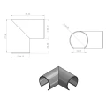 Le diamètre extérieur du raccord est de 44,10 mm, ce qui garantit un positionnement sûr sur les mains courantes Ø 40 mm (diamètre intérieur 40,50 mm) et une transition esthétique et fluide sans ressauts visibles ou bords inégaux. La longueur des bras – respectivement 78,50 mm et 77,50 mm – assure un support solide de la connexion et une résistance aux charges résultant de l'utilisation quotidienne de la rampe. La fente de montage d'une largeur de 26 mm permet de glisser facilement l'élément sur le bord du panneau de verre et un montage rapide.