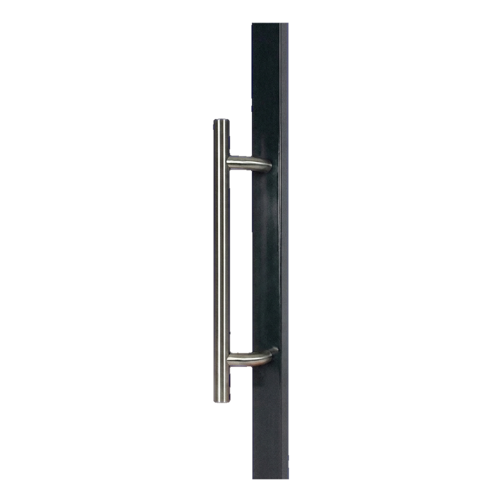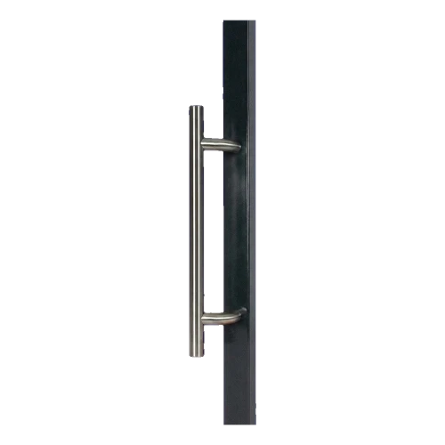 La poignée est unilatérale — destinée au montage d'un seul côté du portail ou de la porte. Le système de fixation sur deux tiges d'ancrage avec vis de serrage garantit un placement stable et rapide sur le profilé. Compatible avec le modèle de portail 3025-HYB-BLIND.