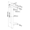 La poignée est montée à l'aide de deux bras terminés par des tiges d'ancrage d'un diamètre Ø22 mm, placées dans des perçages du profilé de portail. Les tiges sont bloquées par des vis de serrage (vis sans fin), ce qui permet un montage rapide sans soudure. L'entraxe des points de fixation est de 300 mm, et l'angle d'inclinaison des bras de 60° assure une prise ergonomique et un aspect esthétique sur le profilé.